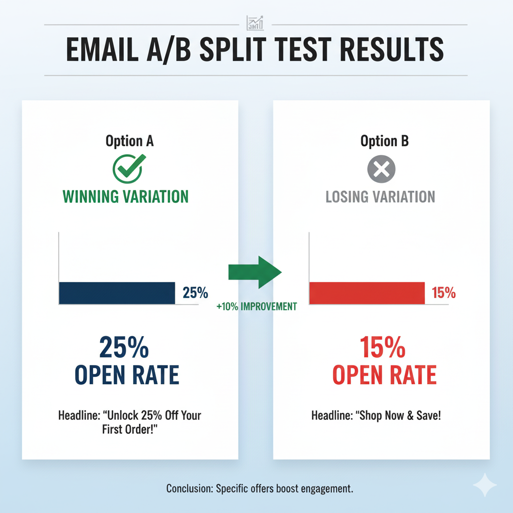 • How it works: The system sends Version A to 10% of the list, Version B to 10% of the list. It waits 4 hours. It sends the winning version to the remaining 80%.